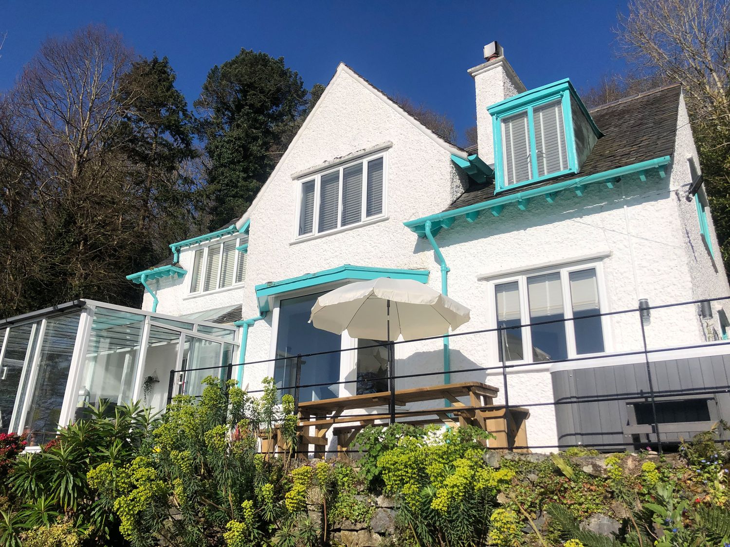 Please note: in between Saturday, 5th July 2025 and Saturday, 20th September 2025 only weekly bookings can be accommodated. Main House ,four bedrooms: 1 x king-size four poster double with en-suite shower room , basin and WC, 1 x double, 1 x double -4ft bed ,1 x twin. Bathroom with bath, hand-held shower, basin and WC. Separate to the main house is an all ground floor outhouse with : 1x double bed, shower with basin and WC, open lounge Kitchen with TV. Utility with additional WC. Dining room. Sitting room with a woodburning stove
