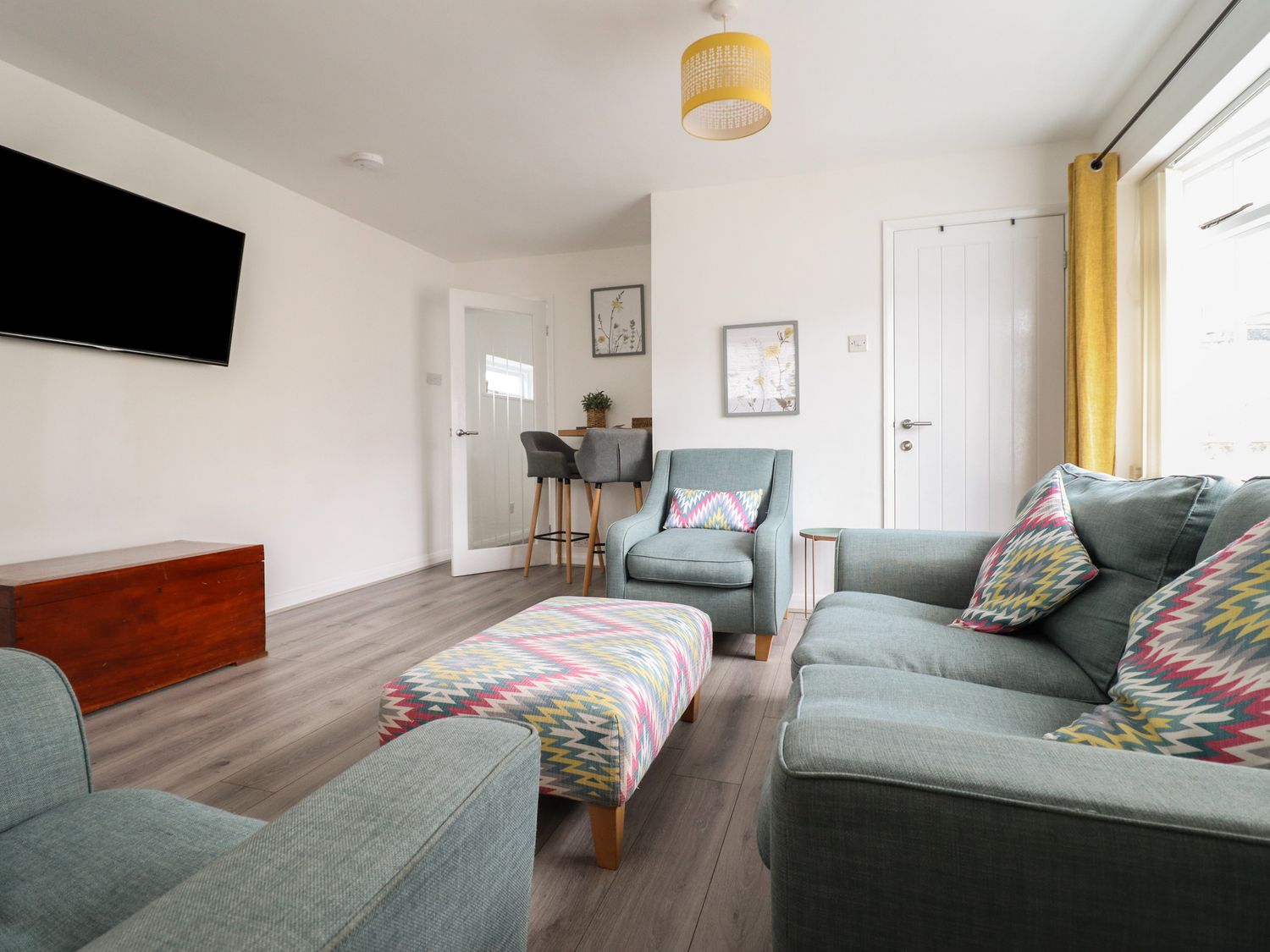 Single-storey. Two ground-floor bedrooms: 1 x double, 1 x twin. Shower room with walk-in shower, basin and WC. Open-plan living space with kitchen, dining area and sitting area