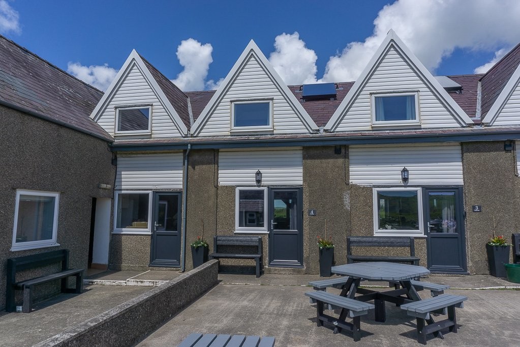 Two bedrooms: 1 x double, 1 x double (zip/link, can be twin on request). Bathroom with freestanding bath, basin, heated towel rail and WC. Ground-floor shower room with walk-in shower, basin, and WC. Open-plan living space with kitchen, dining area, and sitting area with woodburning stove