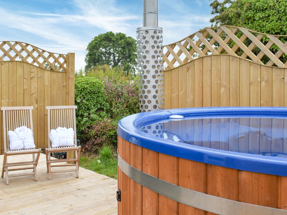 One king-size bedroom. Bathroom with bath, shower over, basin and WC. Kitchen. Sitting room with electric fire