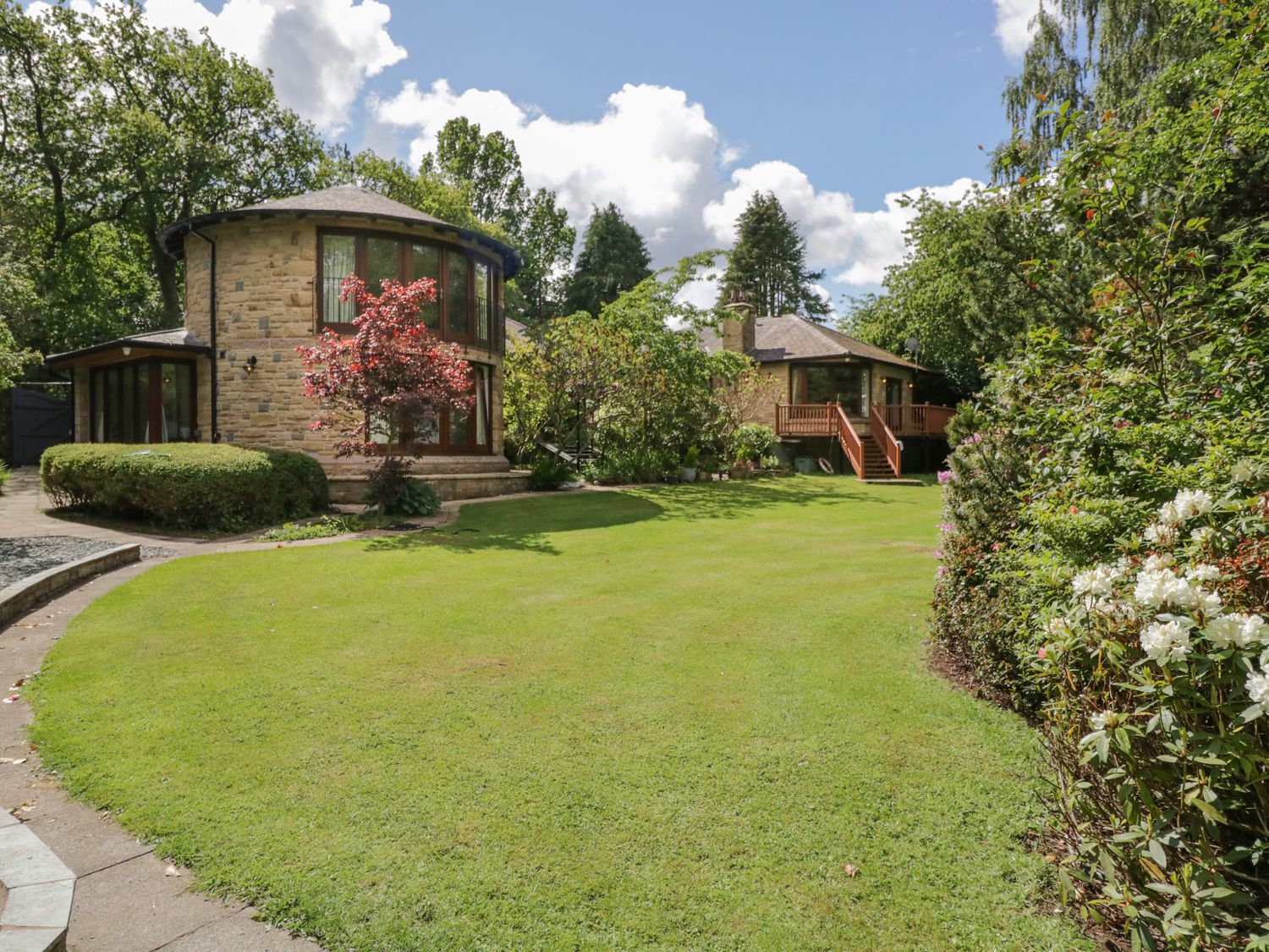 Over three floors. Five bedrooms: 1 x super king-size double, 1 x second floor king-size double, 1 x second floor twin, 2 x family room with 1 king-size double and 1 single. Bathroom with bath, separate shower, basin and WC. Shower room with shower, basin and WC. Second floor shower room with shower, basin and WC. Ground floor cloakroom with basin and WC. Kitchen with dining area and woodburning stove. Sitting room. Room with bar. Conservatory with hot tub.