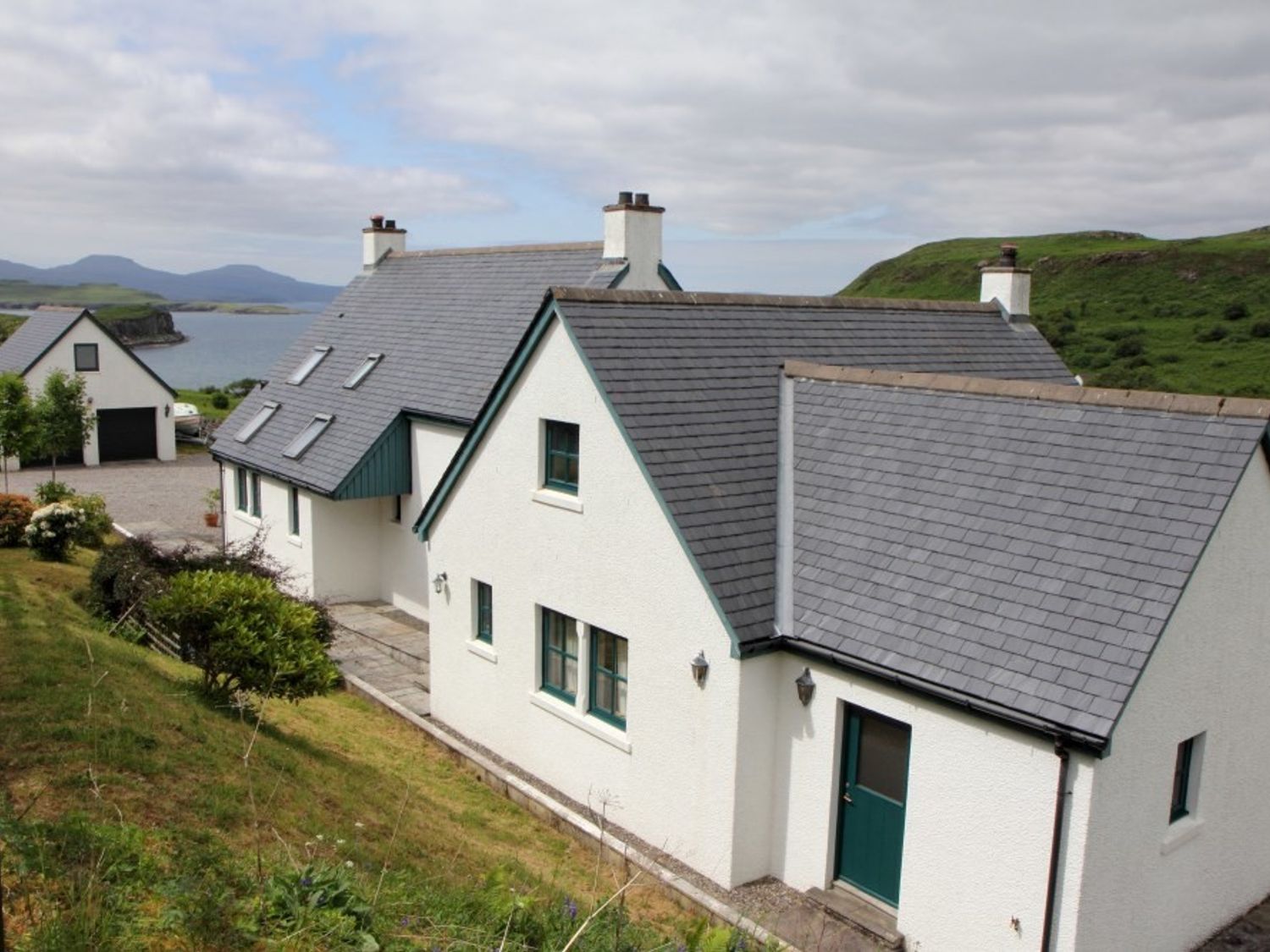 Four bedrooms: 2 x double with TV, 1 x ground-floor twin with TV, 1 x double (in external building) with basin and WC. Bathroom with bath, walk-in shower, basin, and WC. Ground-floor shower room with walk-in shower, basin, WC. Kitchen/diner. Sitting room