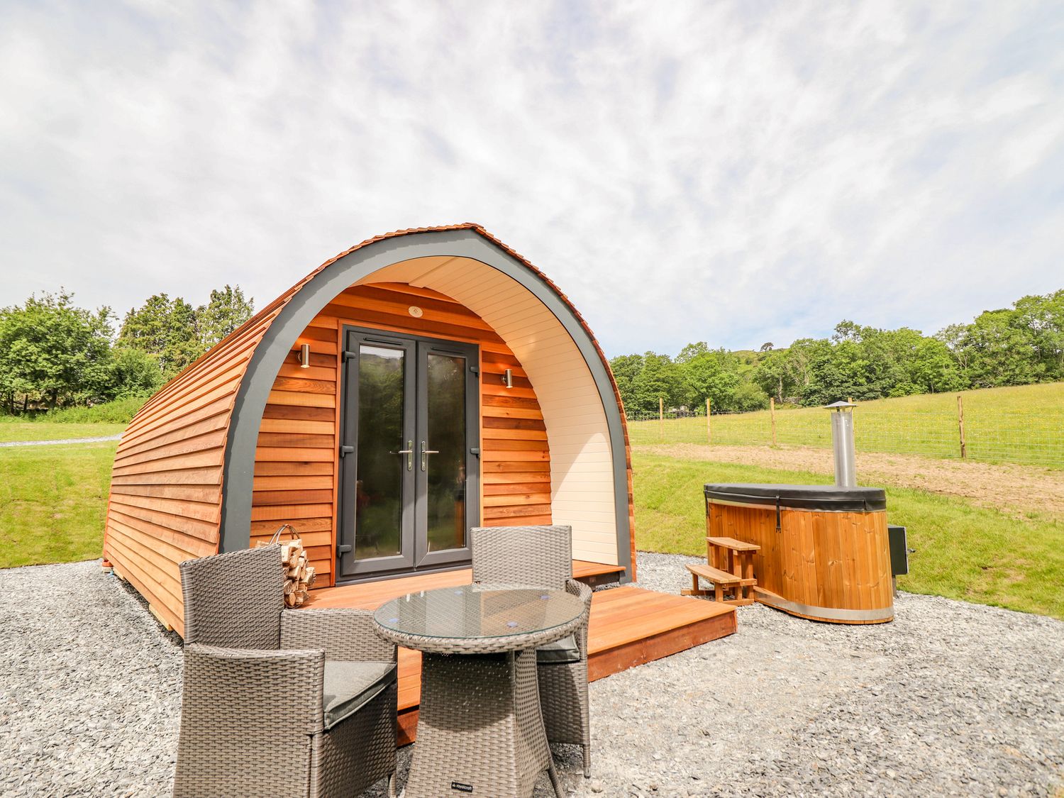 One super king-sized bedroom with Smart TV and freestanding bath. Shower room with walk-in shower, basin, heated towel rail and WC. Open-plan living space with kitchen, dining area and sitting area with woodburning stove