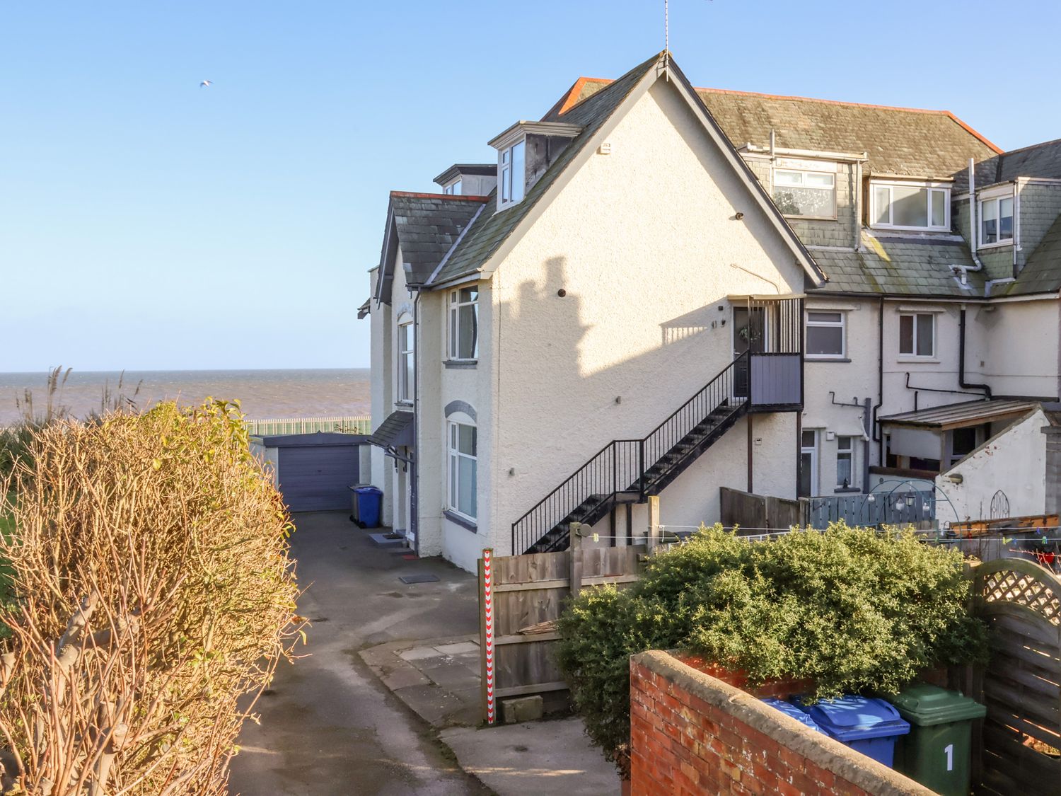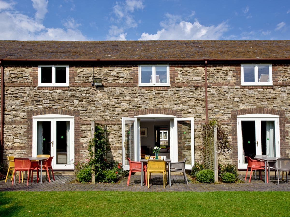 Two bedrooms with Smart TVs: 1 x ground-floor double, 1 x ground-floor twin. Ground-floor shower room with step-in shower, basin, and WC. Open-plan living space with kitchen, dining area, and sitting area with electric fire