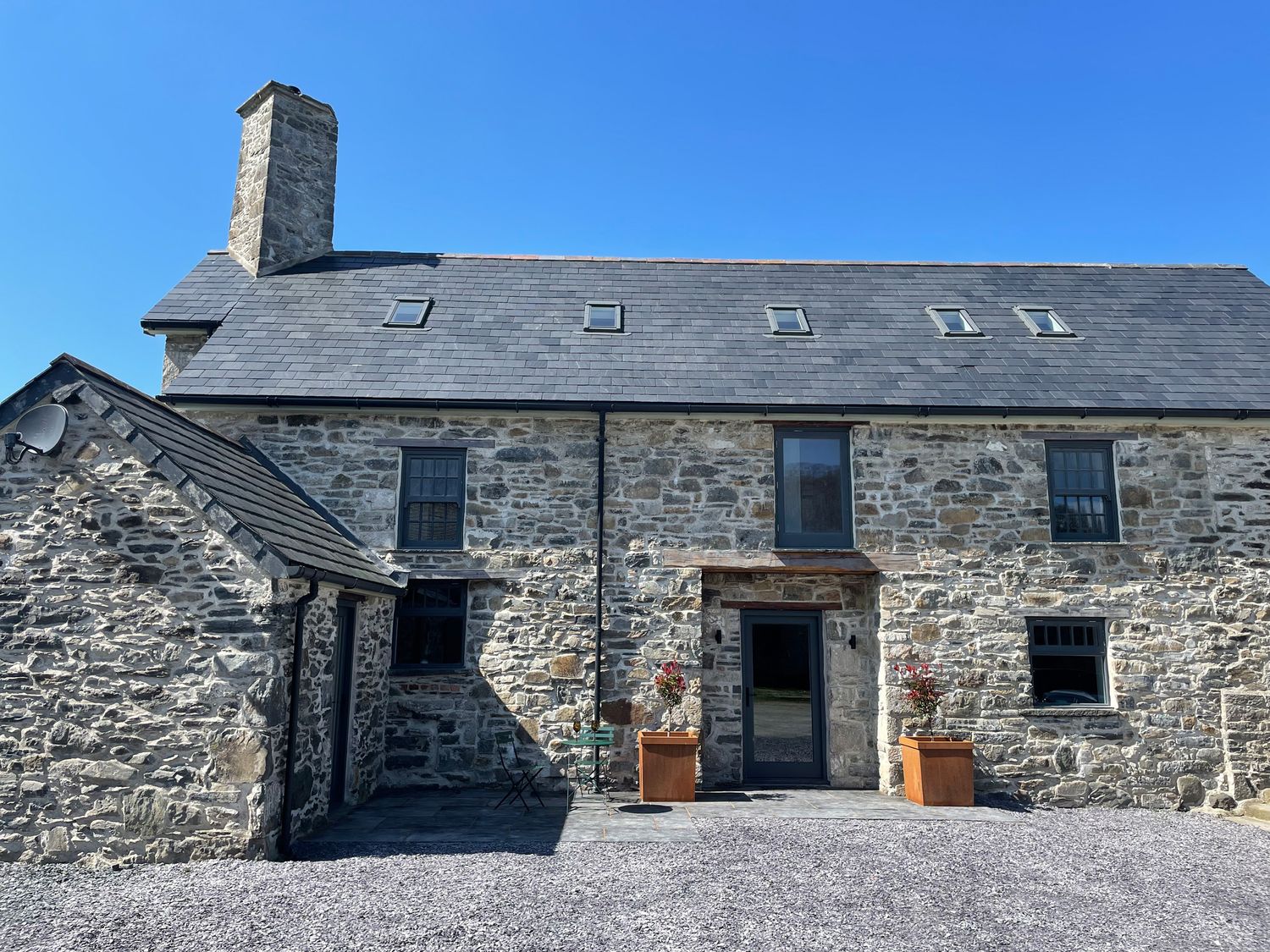 **New addition from November 2025** Hot Tub & Games Room. Five bedrooms: 1 x ground floor super king-size double (zip/link, can be twin on request) with en-suite shower, basin and WC, 2 x double with en-suite shower, basin and WC, 2 x twin (one with low door and ceiling). Bathroom with bath, walk-in shower, two basins and WC. Ground floor cloakroom with basin and WC. Fitted kitchen with TV/Freeview, dining area and woodburning stove. Utility/boot room. Dining room with French doors to patio. Two sitting rooms with woodburning stoves. Reception hall with seating. Entrance vestibule with seating.