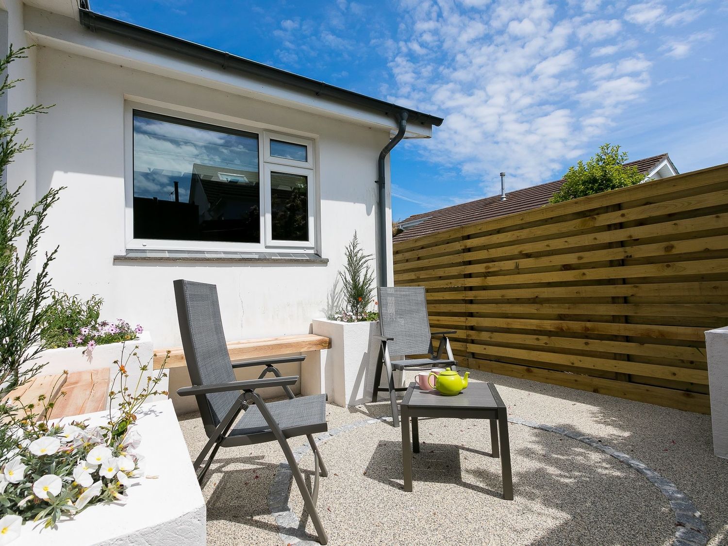 Single-storey. Three bedrooms: 1 x super-king-size with Smart TV, 1 x double with Smart TV, 1 x twin with Smart TV. Bathroom with bath, shower over, basin, heated towel rail, WC. Sitting room. Open-plan living space with kitchen and dining area