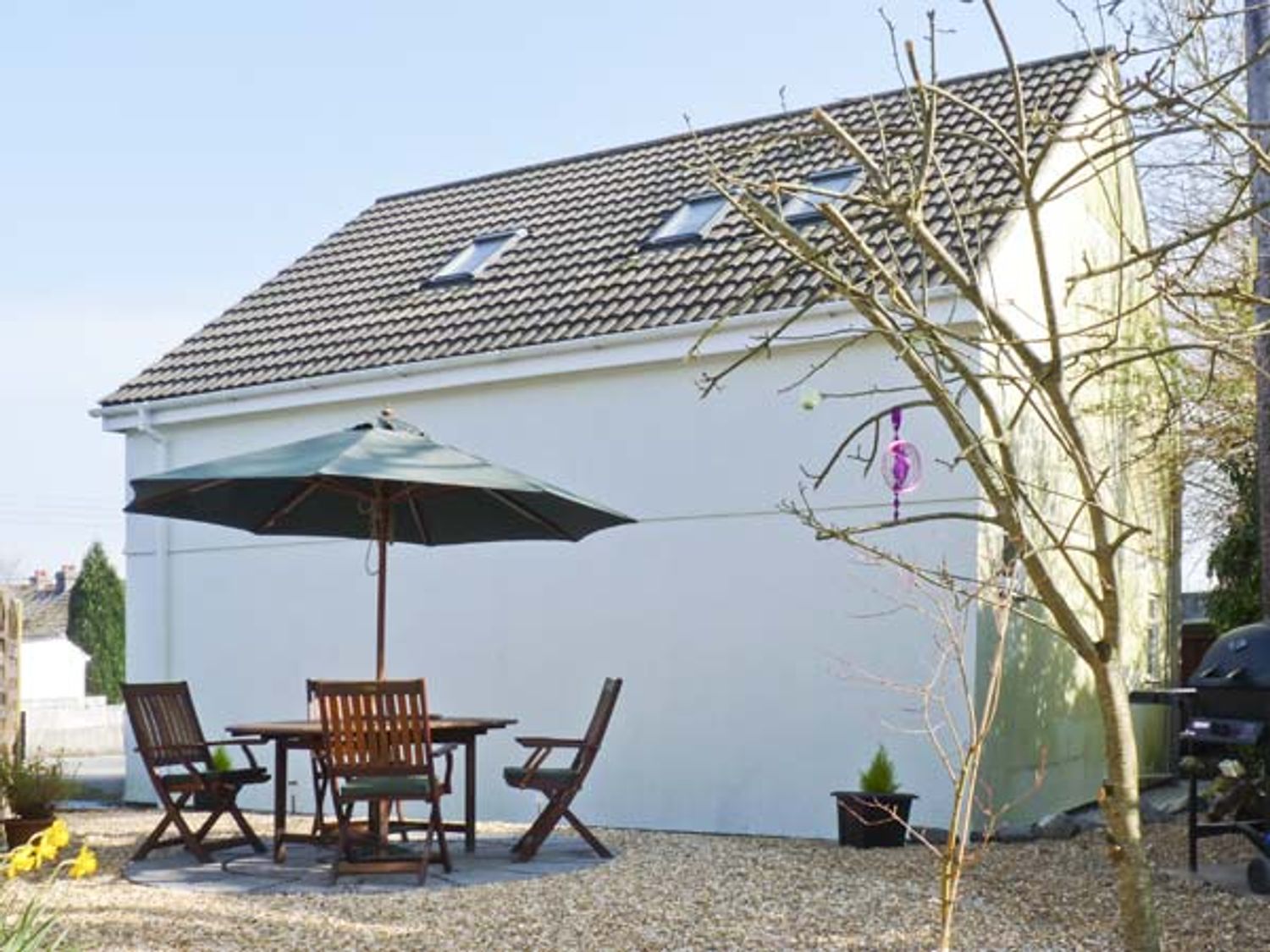 Ground-floor apartment. One double bedroom with en-suite with walk-in shower, basin and WC. Living/dining room