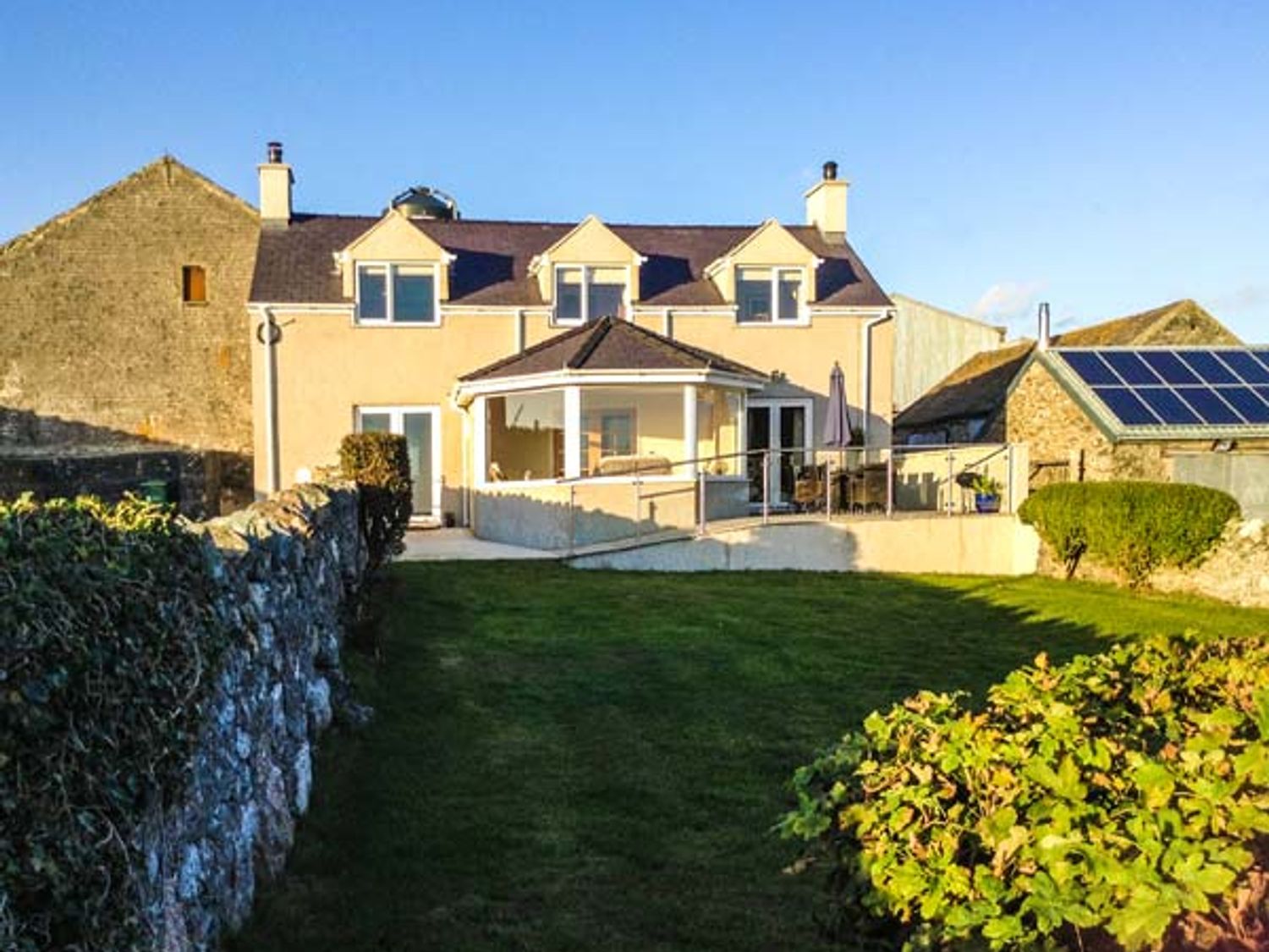 Four bedrooms: 1 x double with en-suite walk-in shower, basin and WC upstairs, 1 x double, 2 x twin. Ground-floor shower room with walk-in shower, basin, heated towel rail and WC. Bathroom with bath, walk in shower, basin and WC. Kitchen/diner. Utility. Sitting room with electric fire. Snug with electric stove-effect fire