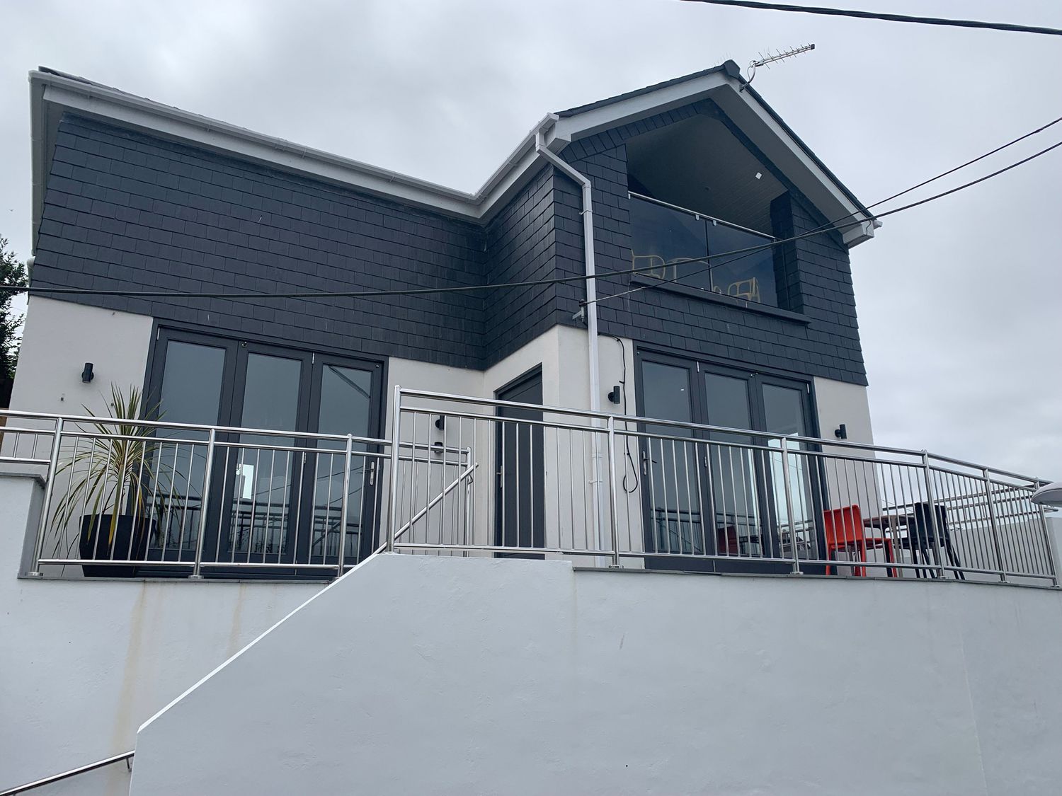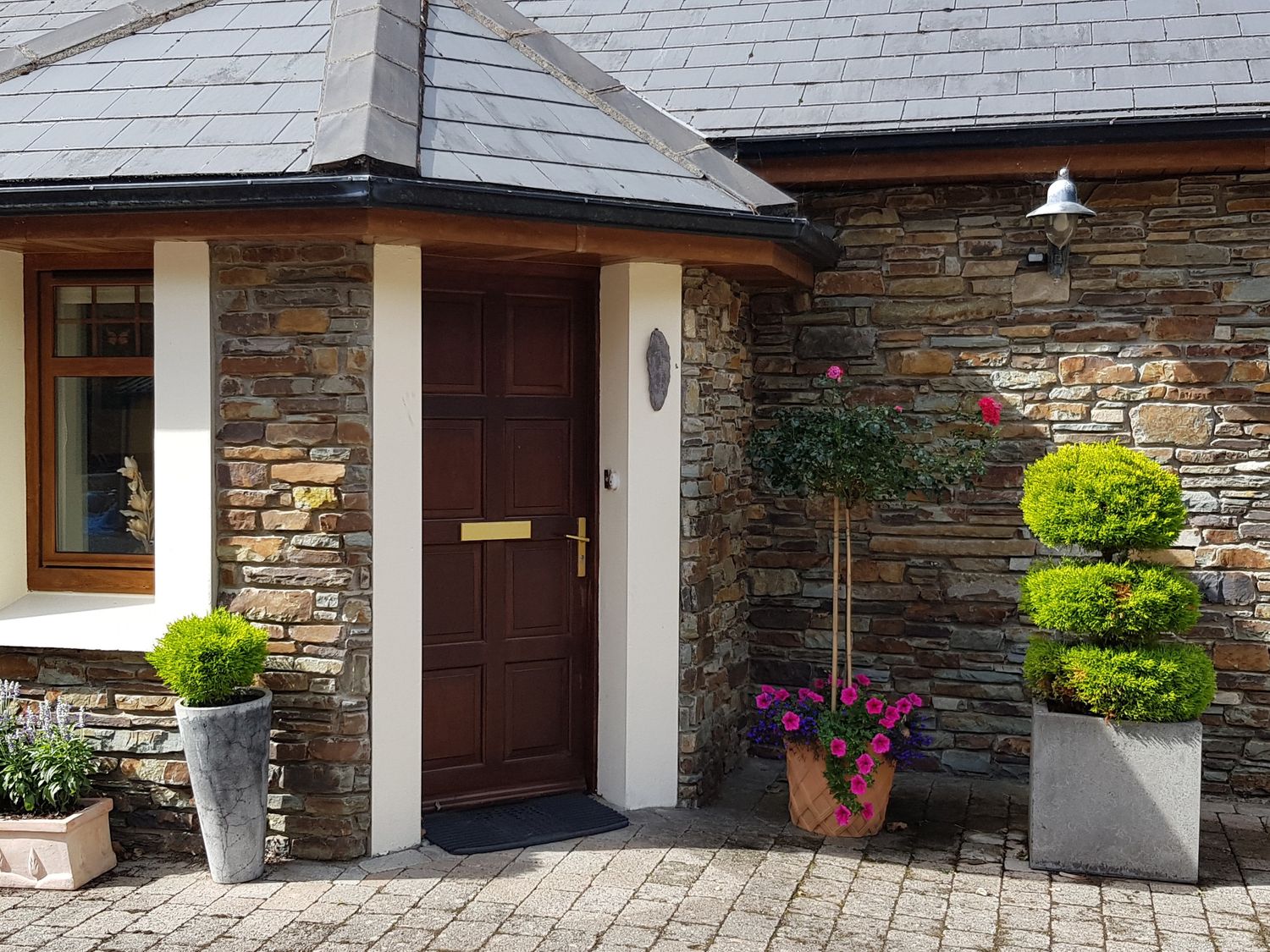 Four bedrooms: 1 x ground-floor double with en-suite walk-in shower, basin, heated towel rail, bidet and WC, 1 x ground-floor double with en-suite walk-in shower, basin, heated towel rail and WC, 1 x double with en-suite walk-in shower, heated towel rail, basin and WC, 1 x ground-floor double. Ground-floor bathroom with bath, shower over, basin and WC. Open-plan living space with kitchen, dining area, 2 x sitting areas and open gas fire. Utility room with washing machine, dryer and an additional fridge.