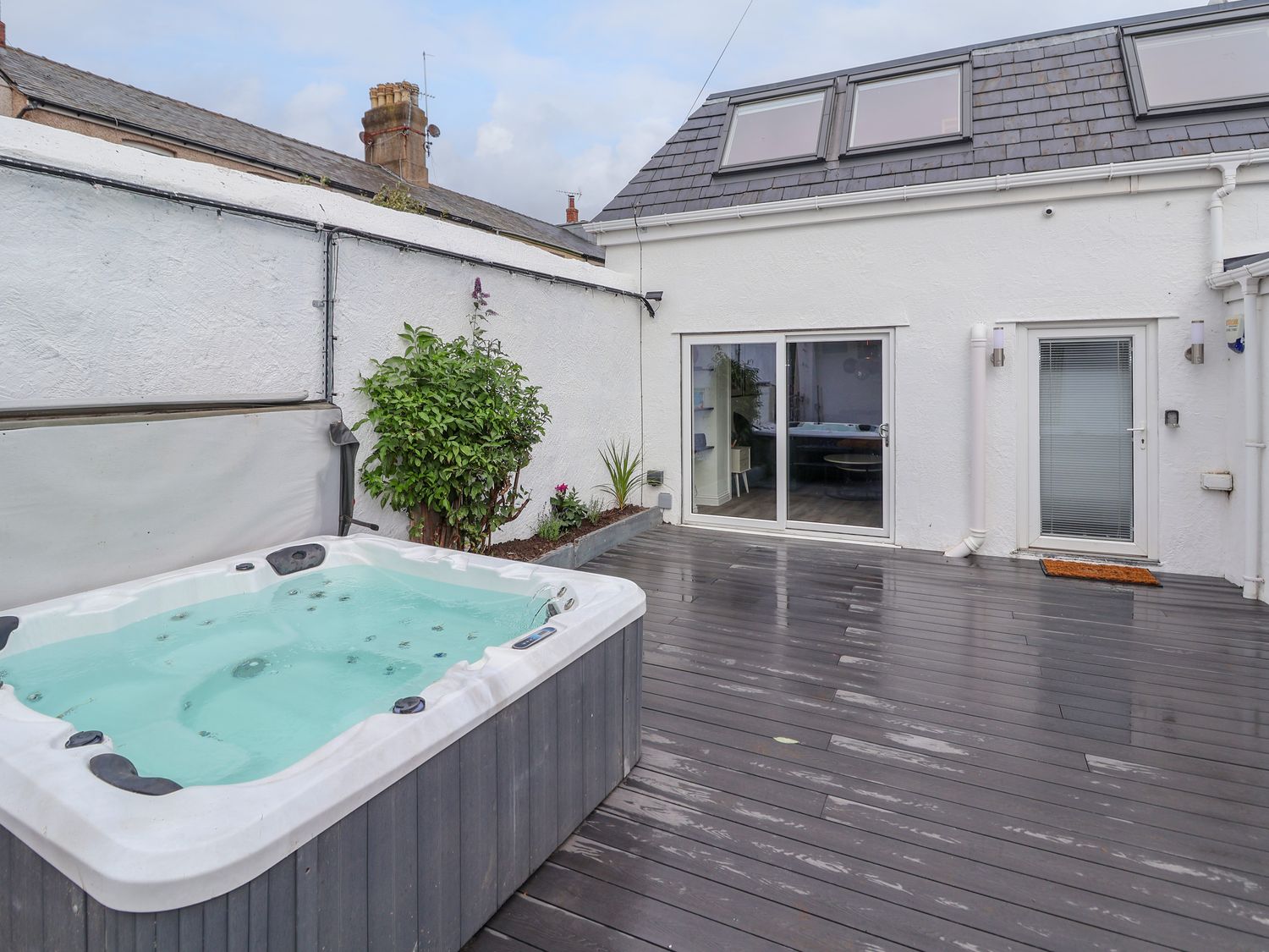 Four bedrooms: 1 x ground-floor super-king-size (zip/link, can be twin on request) with sitting area, Smart TV, and en-suite shower room with shower, basin and WC, 1 x ground-floor king-size with Smart TV, 1 x twin (zip/link, can be super-king-size on request) with Smart TV, 1 x bunk. Ground-floor bathroom with bath, shower over, basin and WC. First-floor cloakroom with basin and WC. Kitchen/diner. Living/dining room with open fire