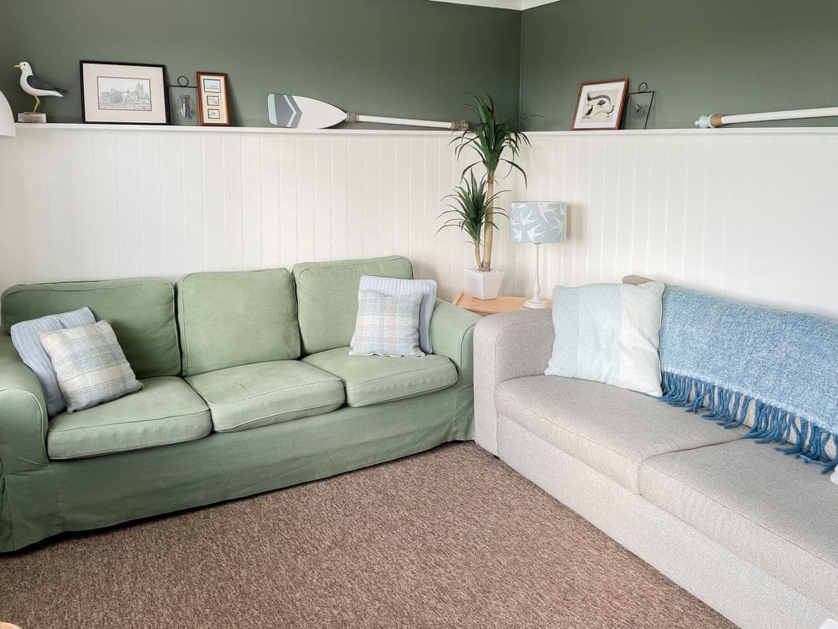 Single-storey. One king-size bedroom with en-suite bathroom with bath, walk-in shower, basin, heated towel rail, and WC. Open-plan living space with kitchen, dining area and sitting area with electric fire