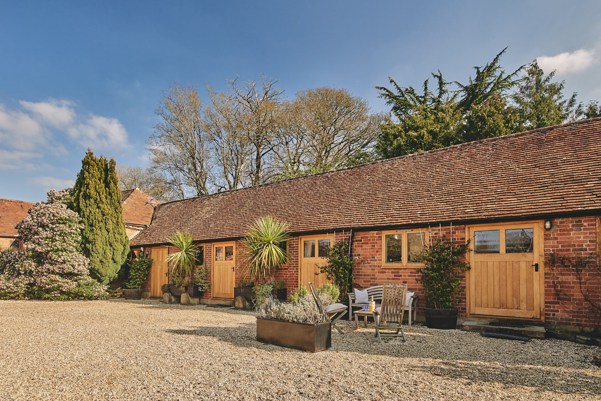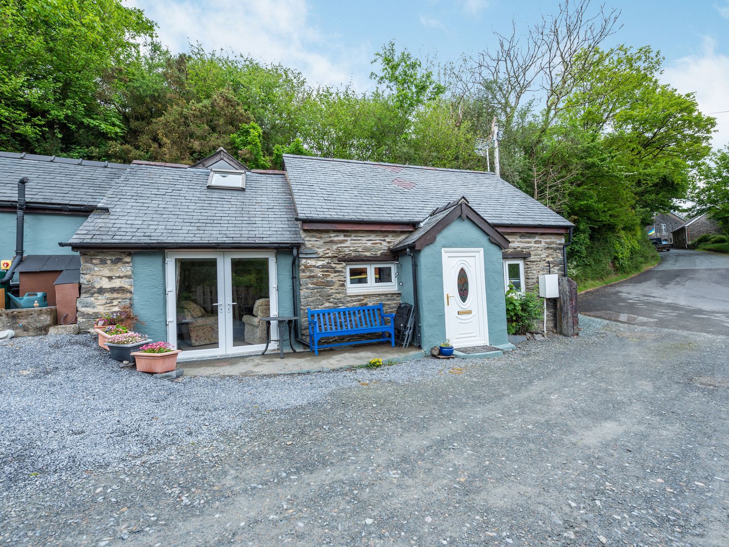 All-ground-floor ( 5 small steps to the main building), Two bedrooms: 1 x king-size with en-suite shower, basin and WC, 1 x twin. Bathroom with bath, shower over, basin and WC. Kitchen. Living/dining room. Ground floor ( 5 small steps to the main building)