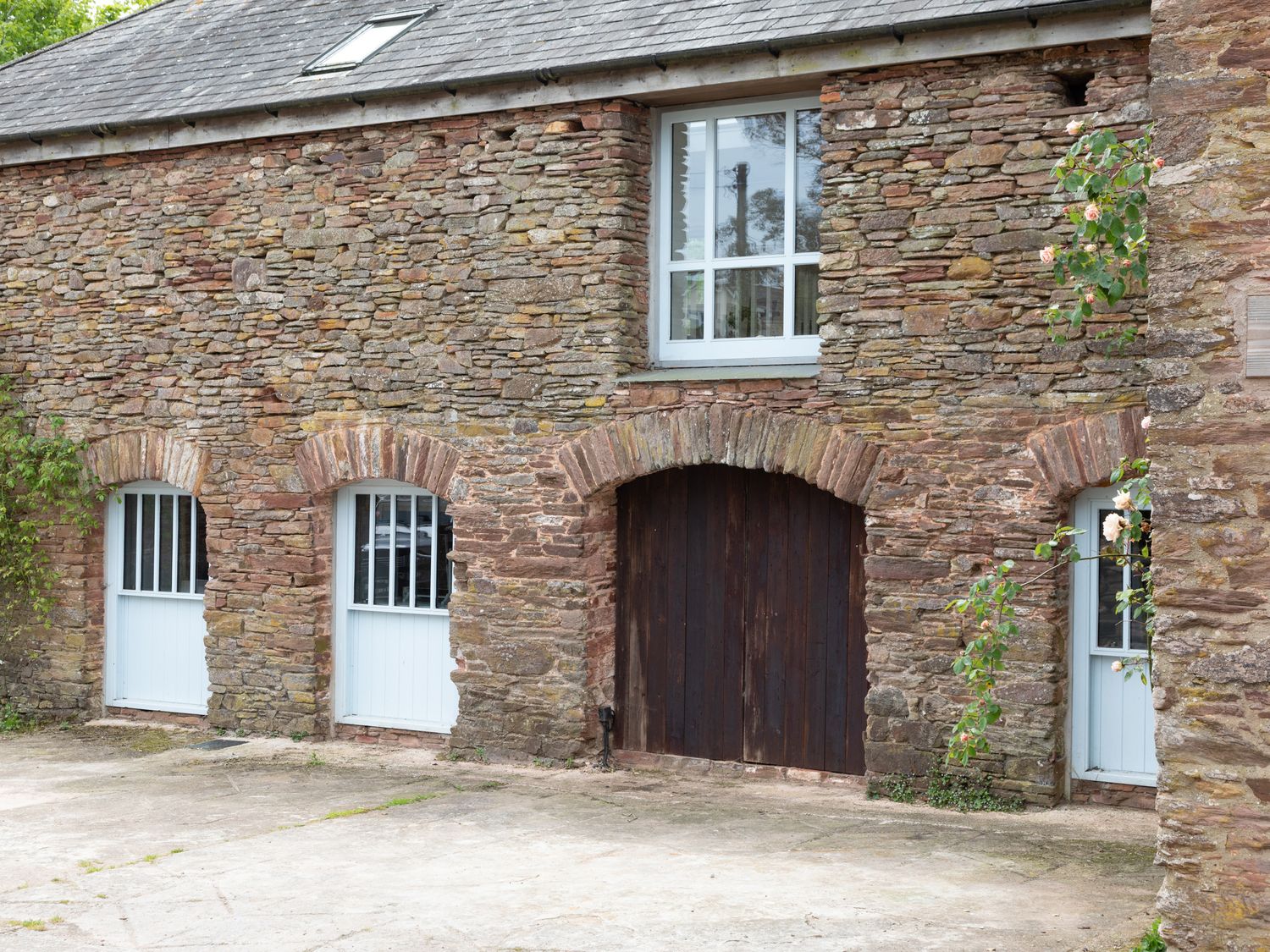 All-one-level. Two bedrooms: 1 x double with TV, 1 x twin. Bathroom with bath, shower over, basin and WC. Open-plan living space with kitchen, dining area and sitting area with woodburning stove. External utility and shed