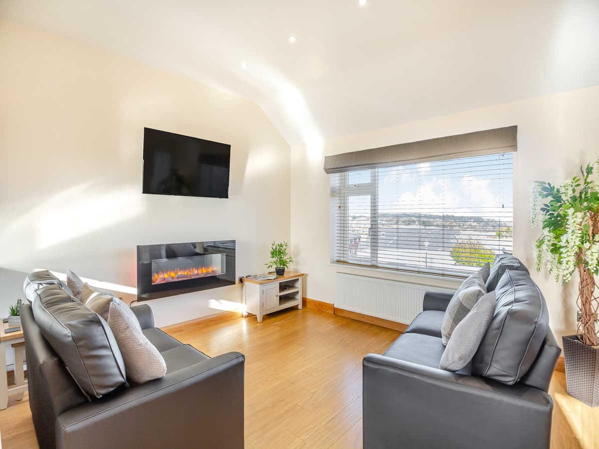 Two bedrooms: 1 x double with en-suite shower, basin and WC, 1 x twin. Bathroom with bath, shower over, basin and WC. Open plan living area with fitted kitchen, dining area and sitting area with sofa bed and open fire.