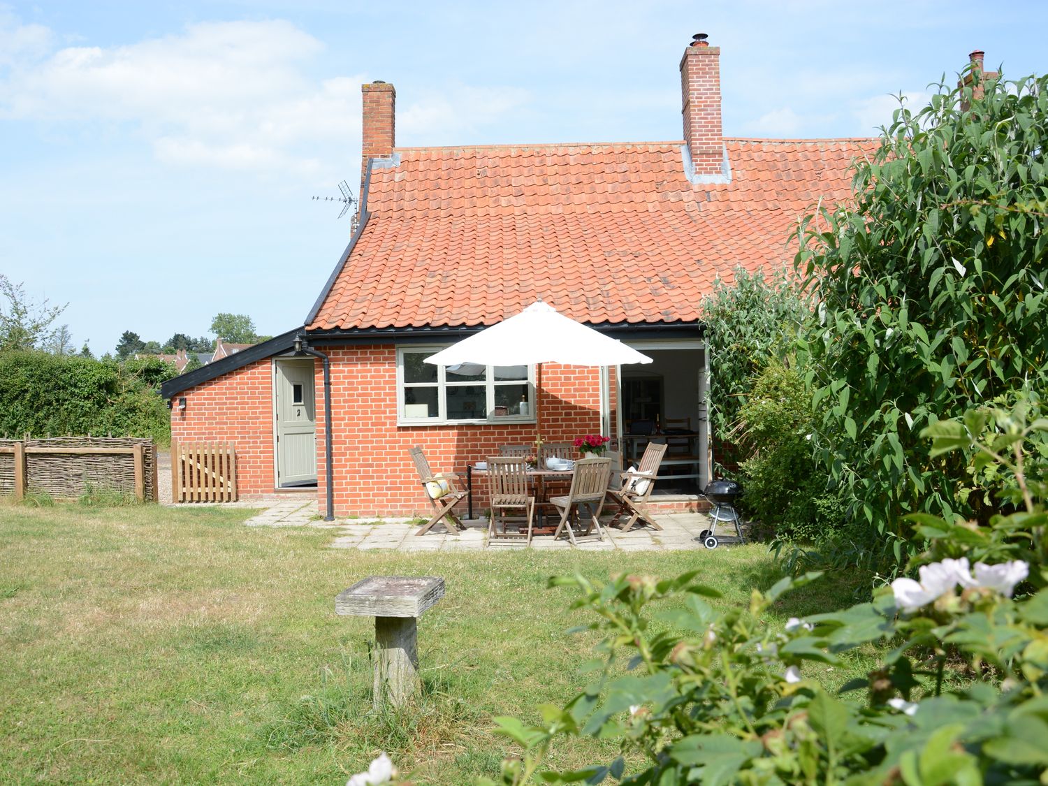 Three bedrooms: 1 x king-size with TV, 1 x twin, 1 x single. Bathroom with bath, shower over, basin, towel rail, and WC. Kitchen. Dining room. Sitting room. Garden room