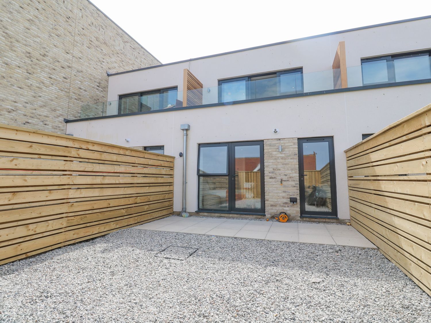 Two bedrooms: 1 x ground-floor double, 1 x family room with king-size and twin. Ground-floor bathroom with freestanding bath, walk-in shower, basin, and WC. Cloakroom/utility with basin, WC, washing machine, and tumble dryer. Open-plan kitchen, dining area, and sitting area. Snug