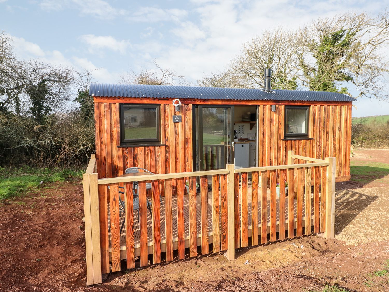 All-ground-floor. One super-king-size bedroom. Shower room with walk-in shower, basin, heated towel rail and WC. Open-plan living space with kitchen, dining area and sitting area