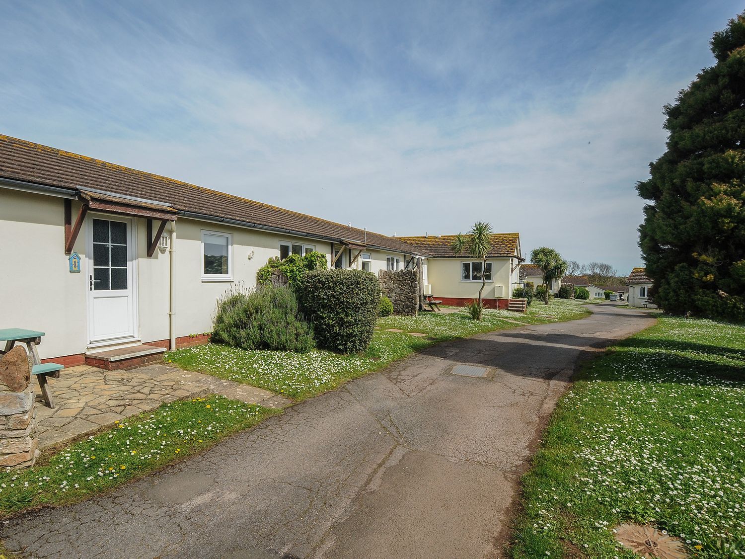 Single storey. Three bedrooms: 1 x double, 1 x sofa bed, 1 x Z-bed. Shower room with walk-in shower and WC. Open-plan living area with kitchen, dining area, and sitting area with woodburning stove.