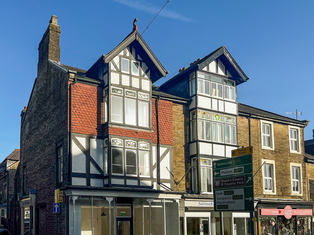 First-floor apartment. Two double bedrooms with Smart TVs. Shower room with walk-in shower, basin, heated towel rail, and WC. Open-plan living space with kitchen, dining area and sitting area with woodburning stove
