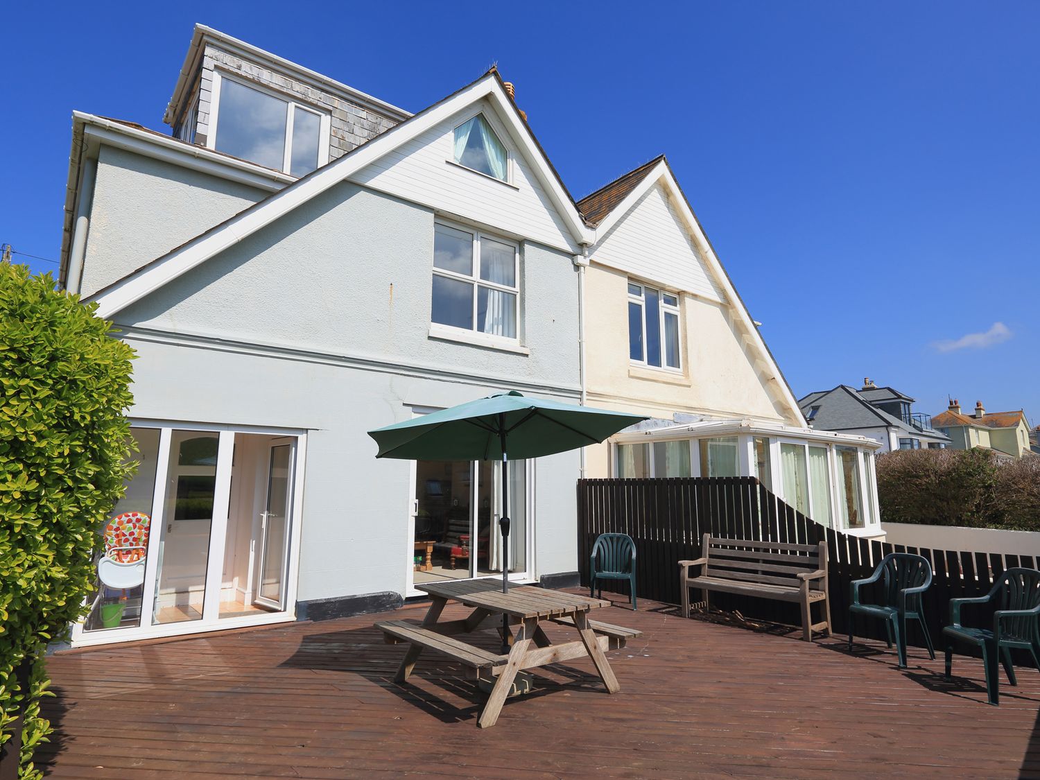 Over two floors. Four bedrooms: 1 x king-size with en-suite shower room with shower, basin and WC, 1 x king-size and 2 x twins. Bathroom with bath, shower over, basin and WC. Ground floor cloakroom with basin and WC. Kitchen. Dining room. Sitting room. Games room.