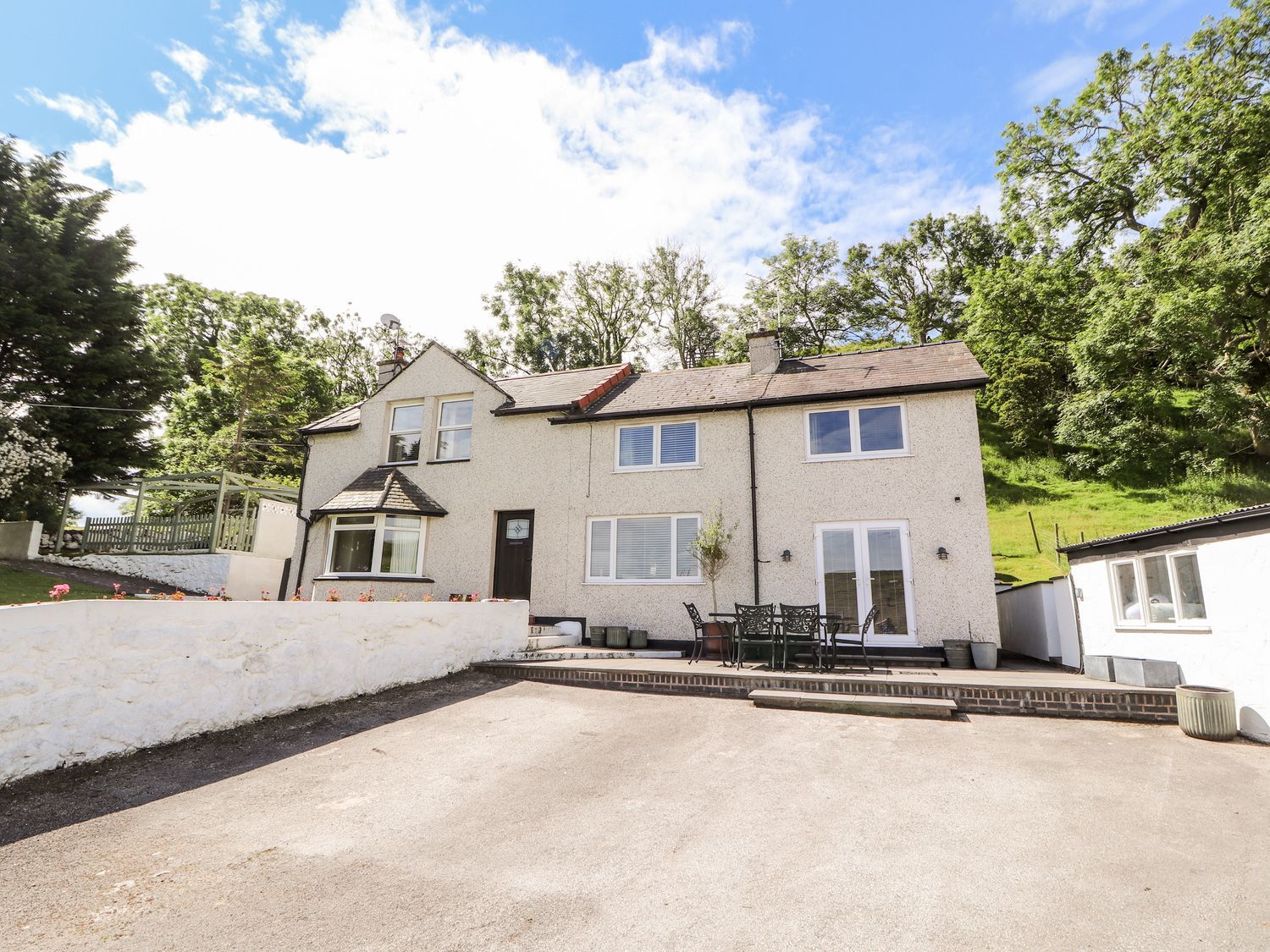 Four bedrooms: 1 x ground floor twin, 1 x king-size double bedroom with a sea view and en-suite bath, basin and WC, 1 x double with sea view, 1 x twin with sea view. Ground floor shower room with shower, basin and WC. First floor family bathroom with bath, shower (over), basin and WC. Open-plan kitchen and dining area with doors out to garden. Utility room. Sitting room with Jetmaster fire, doors out to garden, and sea view.