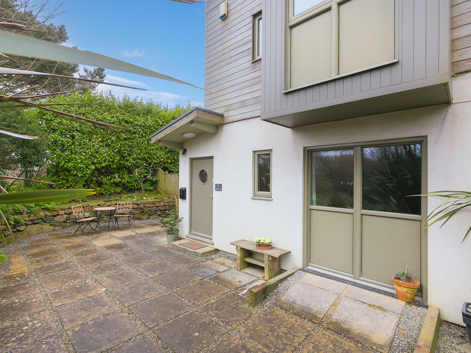 Before you head indoors, the decked terrace invites you to pause for a moment, picture sipping a morning coffee at the table and chairs, listening to the gentle trickle of the brook that runs nearby and watching birds flit across the surrounding fields.